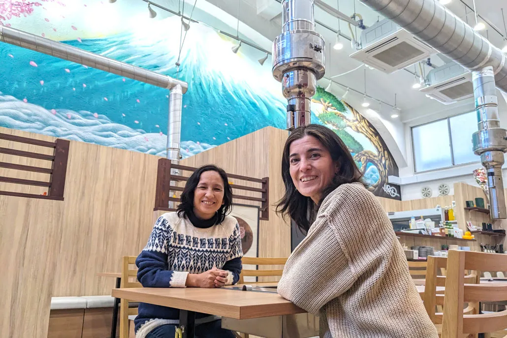 今回、さのローカルグルメ散歩を体験したアナさん(左)とベティさんの感想