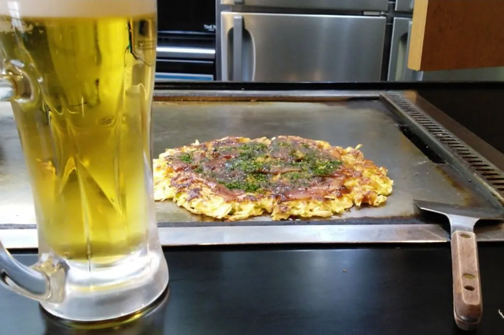 キャベツたっぷりなお好み焼きはお酒との相性抜群!