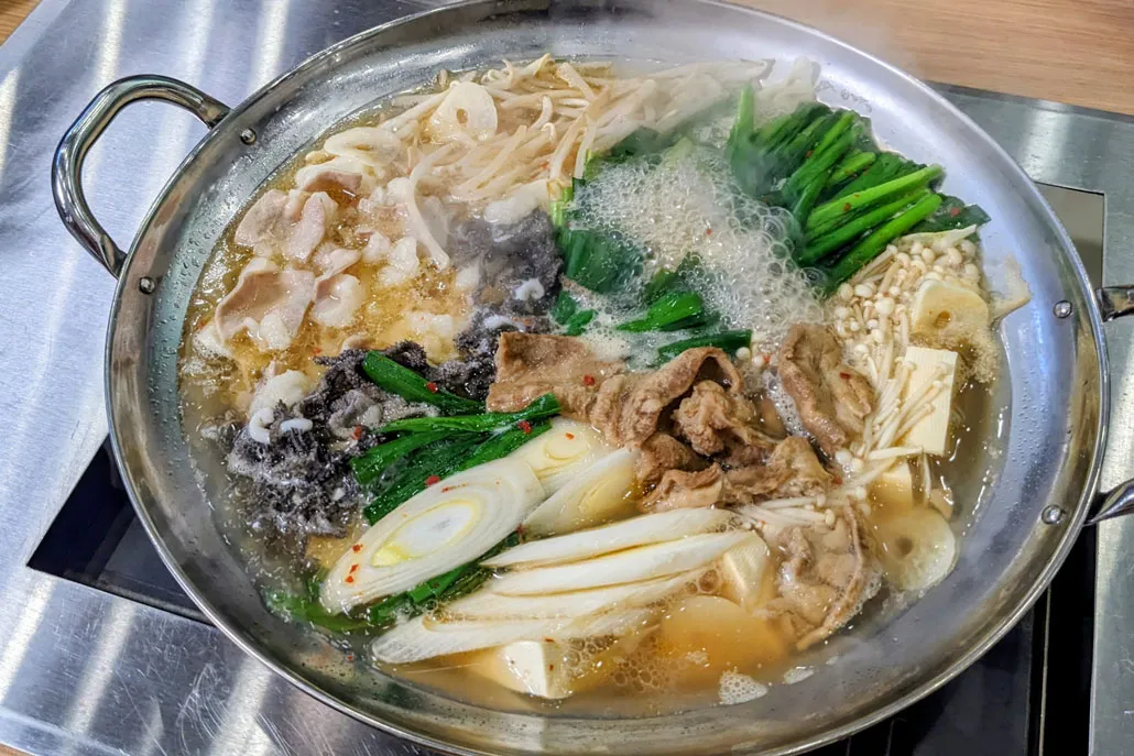 肉タレ屋オリジナルの秘伝スープに、にんにくを効かせたスタミナ鍋でホルモンの旨みもしっかり堪能できます。