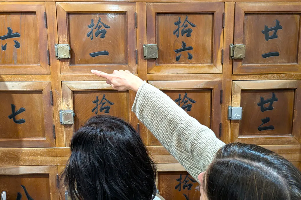 店内に足を踏み入れると、銭湯の面影があちらこちらに残り、番台や木の下駄箱なども当時のまま。