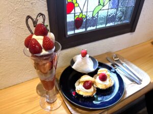 The café is also open to visitors who wish to stop by just for sweets and coffee, featuring desserts made with fresh seasonal strawberries.