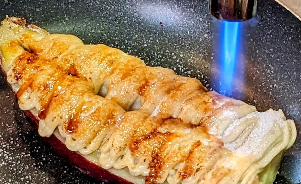 A luxurious Japanese twist on the classic brûlée — smooth sweet potato custard beneath a caramelized sugar crust.