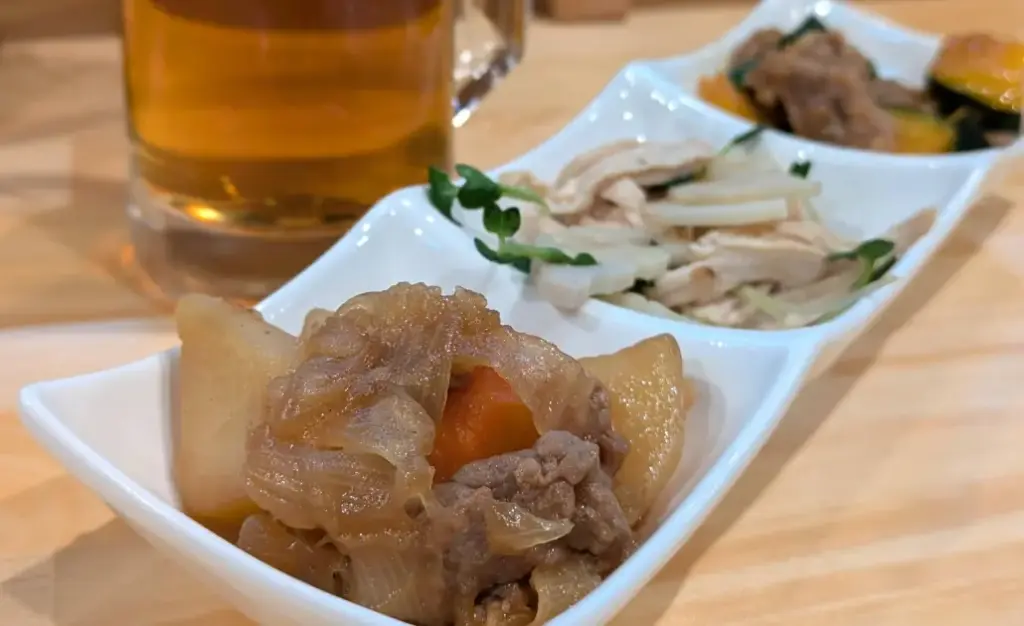 Perfect for an izakaya-style visit, with 7–8 types of daily side dishes (obanzai), oden (Japanese hot pot), and a range of à la carte dishes.