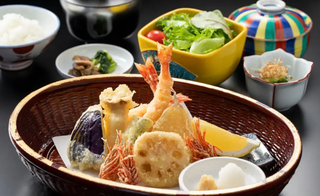 ホテルのレストランならではの落ち着いた上質空間で、見た目にも美しい五感で味わう逸品が愉しめます。国産車海老天ぷらセットや和牛ロース牛鍋セットなど、和の味を堪能ください。