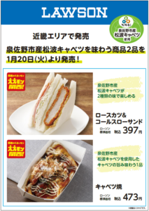 泉佐野市産「松波キャベツ」使用商品が近畿地区ローソンで発売中!