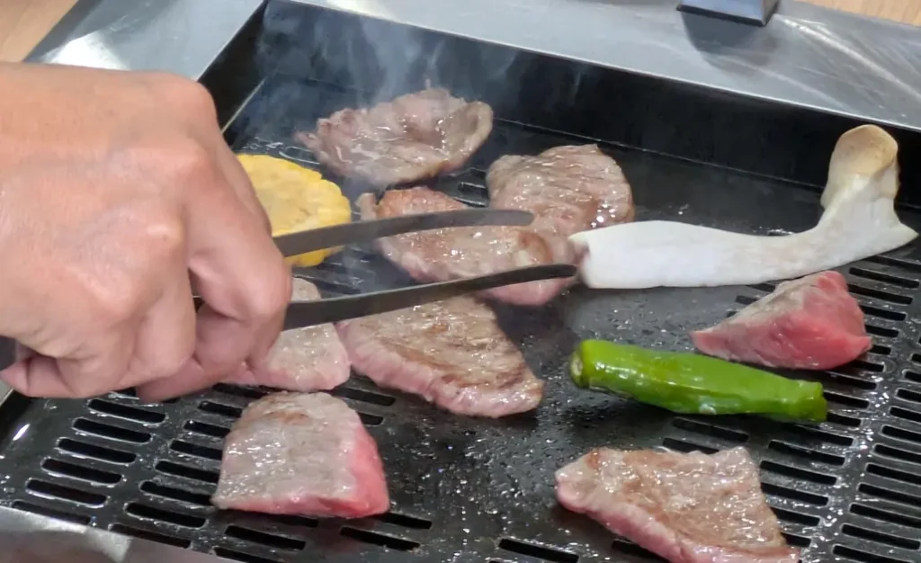 運営するのは、大阪・堺で140年以上の歴史を持つ老舗精肉卸「やまさん阪本商店」。自社牧場で育てた鹿児島県産黒毛和牛“やまさん牛”の中から、A4ランク以上の未経産雌牛のみを厳選。部位ごとの個性を見極め、職人の手仕事によって一枚一枚丁寧に提供されます。