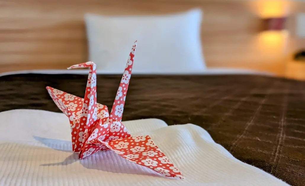 每间客房都经过细致清洁,并精心放置 折纸千纸鹤 ——象征着美好祝愿与真挚的日本式待客之道(おもてなし)。