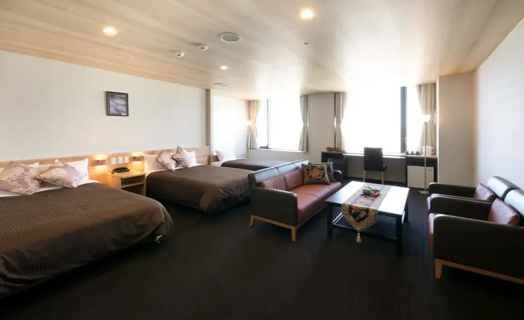 馆内以柔和灯光与 日本“和”(Wa) 美学 为设计主题,呈现“和谐与精致简约”的空间理念,营造宁静放松的住宿氛围。