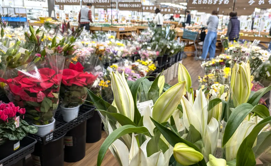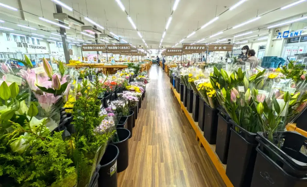 来自 泉州地区(Senshu)——包括 貝塚市(Kaizuka)、泉佐野市(Izumisano)、岬町(Misaki)——的新鲜农产品每天直送到店。这里汇集了清晨采摘的蔬菜、当季鲜花以及各类加工食品,是极具人气的农产品直销店。